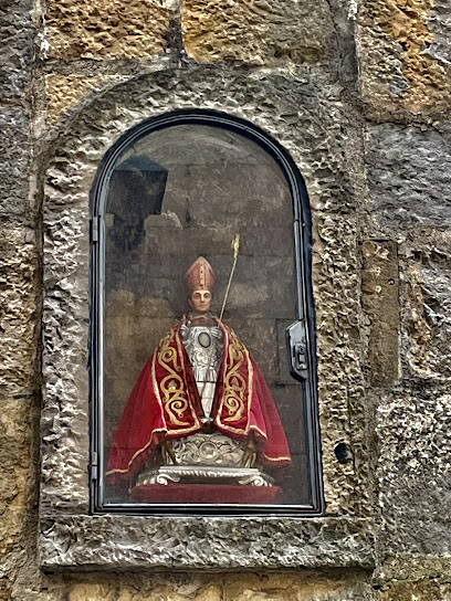 Iglesia centenaria con decoración interior ornamentada y dorada, con una estatua del patrón de la ciudad.